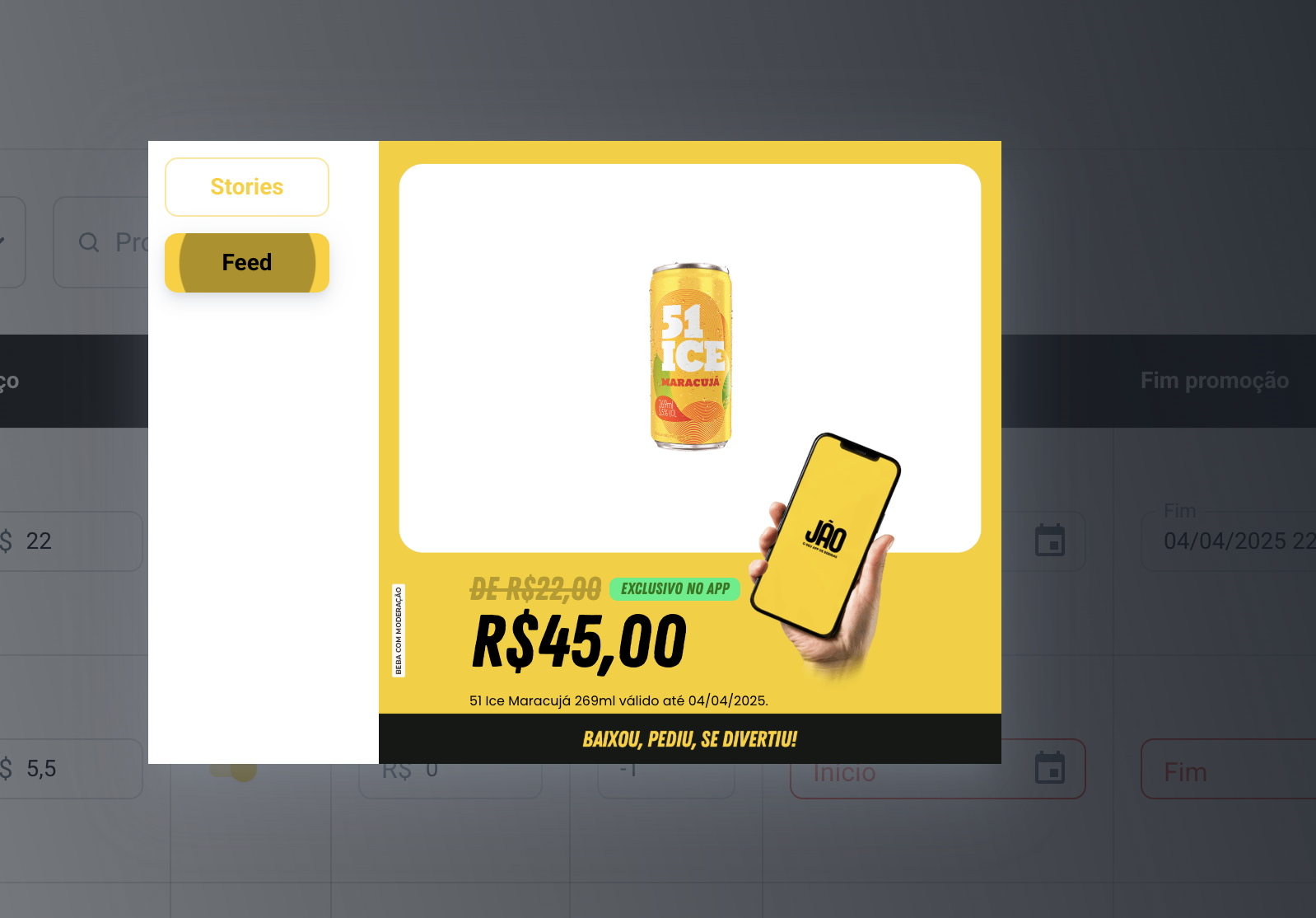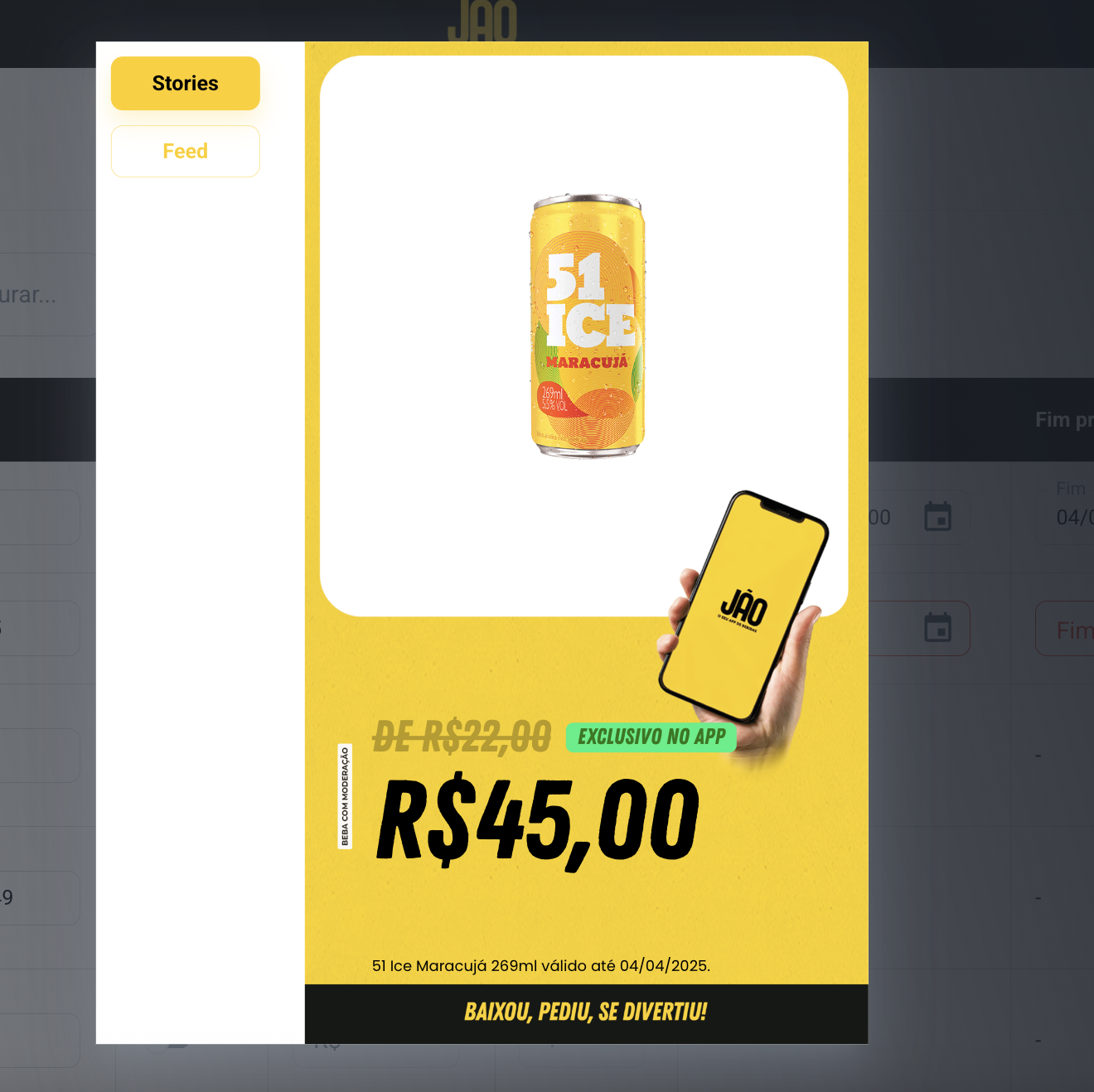 Será exibido um quadro com duas opções de criativos: STORIES e FEED.
