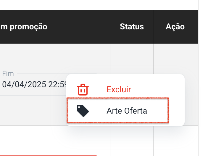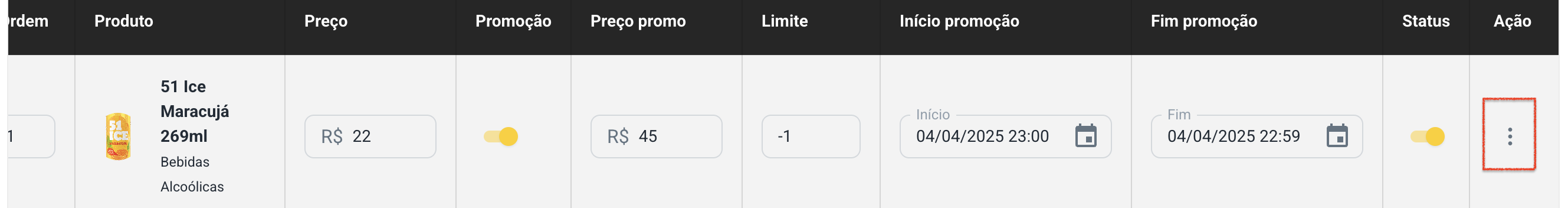 Ativando a chave de promoção do produto desejado clique no botão de ação do produto destacado na imagem abaixo.