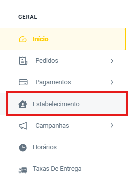 Sabendo a importância desse fator, vamos verificar como fazer isso. Primeiro, acesse o menu e vá em Estabelecimentos, assim: