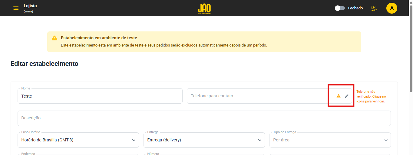 Lembrando: caso queira alterar o número de telefone cadastrado, basta clicar no lápis e verificar o novo número desejado. Assim, ele irá substituir o número antigo.