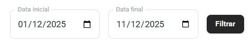 Exemplo: para analisar janeiro, selecione de 01/11/2025 a 11/12/2025.