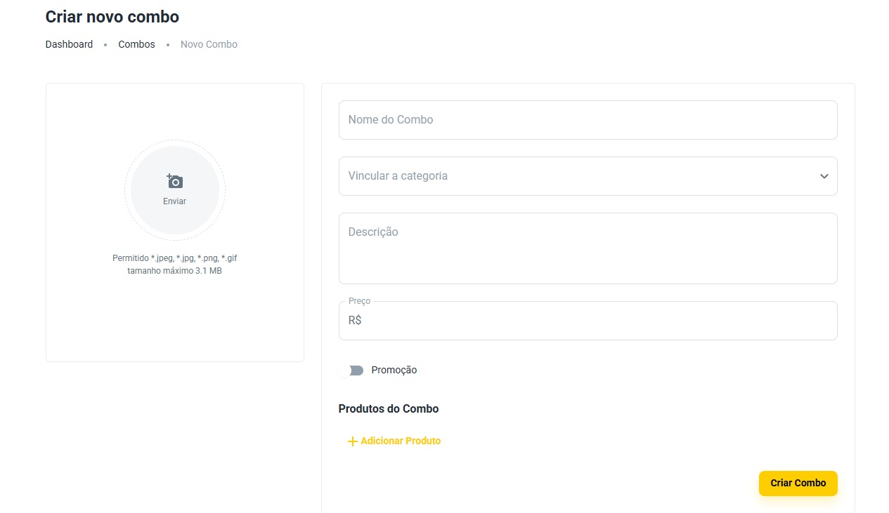 Quando tudo estiver pronto e conferido, basta clicar em “criar combo” — e pronto! Seu combo estará disponível para os clientes.