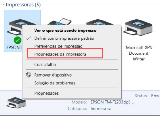 Localize sua impressora, clique com o botão direito e selecione Propriedades da impressora.