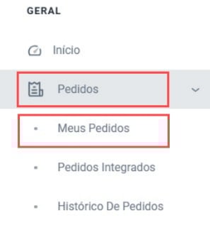 Pelo painel, acesse o menu lateral, clique em “Pedidos” e depois em “Meus pedidos”..