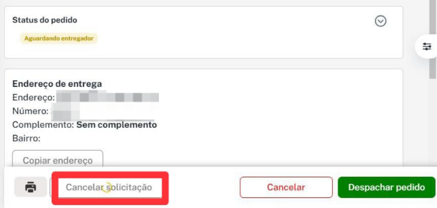 Confirme em ‘Cancelar solicitação’ e pronto! A solicitação será cancelada e nenhum entregador receberá mais o alerta.