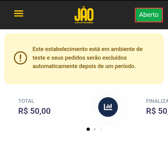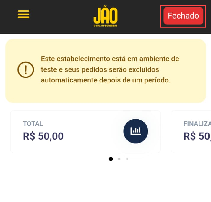 Para abrir a loja, basta clicar no botão que está vermelho e escrito “Fechado” — ao clicar, ele irá automaticamente mudar para o status “Aberto”.