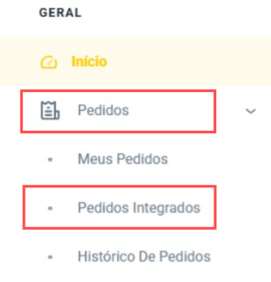 No seu painel do lojista, vá até o menu lateral e clique em Pedidos > Pedidos Integrados.