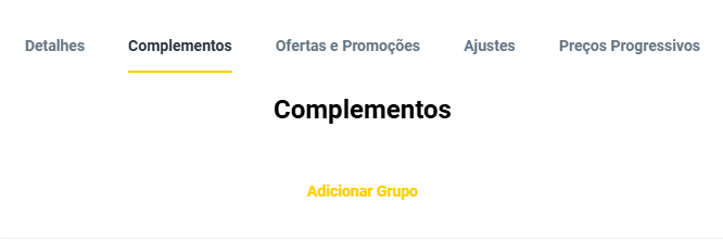 Você pode adicionar quantos complementos quiser em cada grupo, ou também pode adicionar novos grupos de complementos.