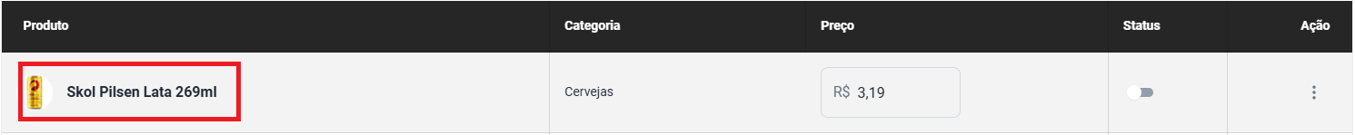 Primeiro, toque em cima do nome do produto que deseja editar: