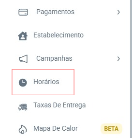 Para configurar os horários do seu estabelecimento, basta clicar na aba "Horários" em seu painel.
