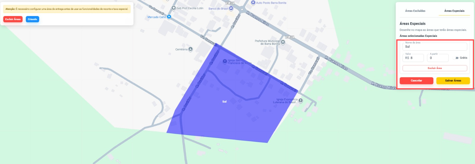 Se você deseja cobrar valores diferentes de frete para regiões específicas, é possível criar áreas especiais.