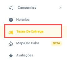 Acesse o menu lateral e clique em Taxas de entrega.