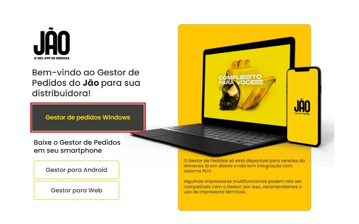 Se você já possui a versão antiga do Gestor de Pedidos Jão para Windows, é preciso desinstalar e instalar novamente. Caso precise de ajuda, clique aqui para acessar o artigo de auxílio.