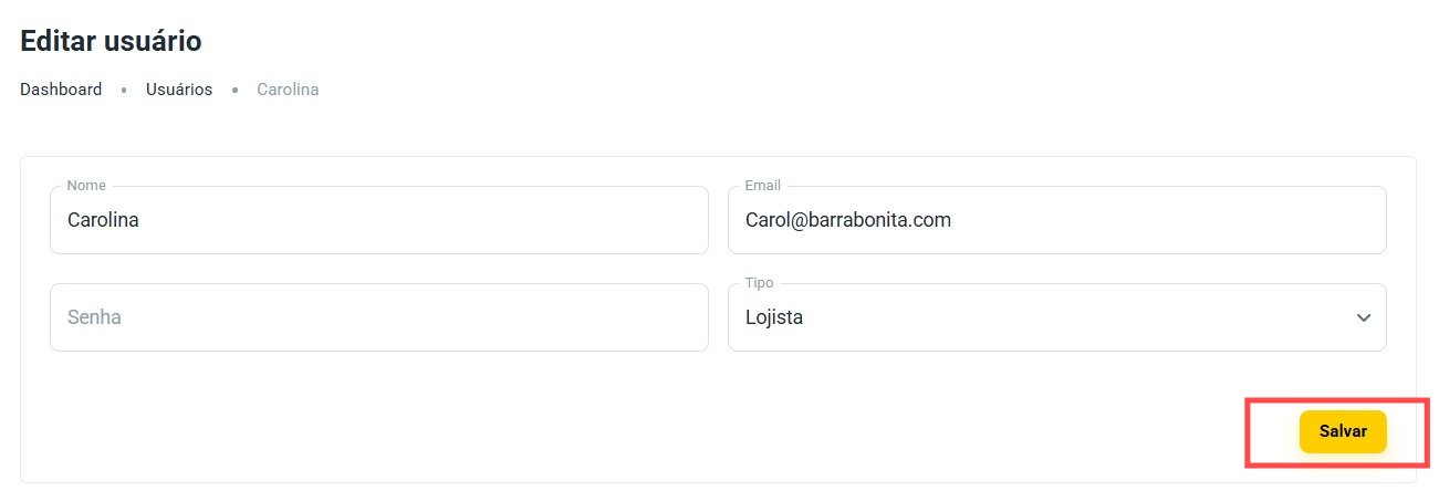 Após inserir a nova senha, clique no botão "Salvar" para confirmar a alteração. A nova senha será atualizada imediatamente, e o colaborador poderá usá-la para acessar a plataforma.