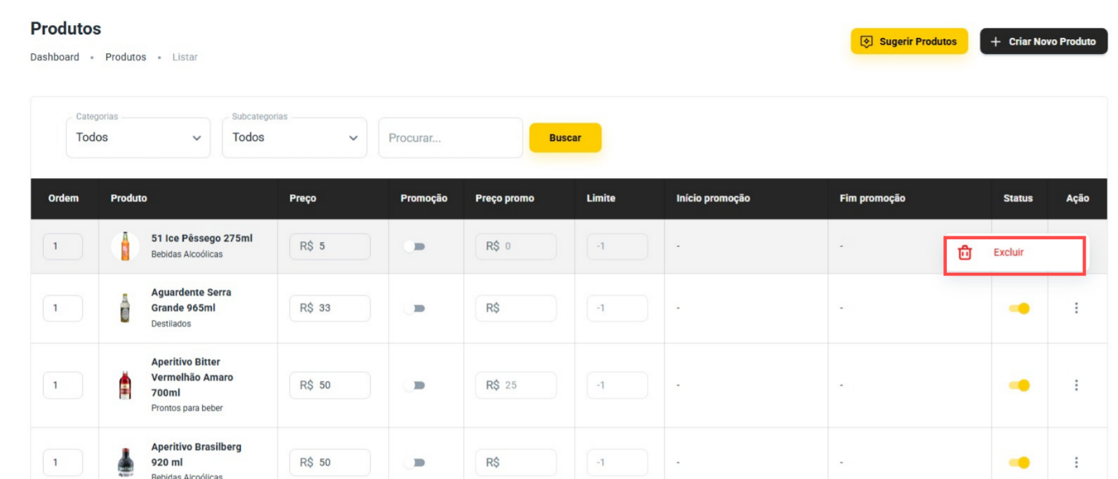Passo 3: Clique na opção "Excluir". Uma confirmação será solicitada para garantir que você realmente deseja excluir o produto. Confirme a exclusão para remover o produto do seu cardápio.