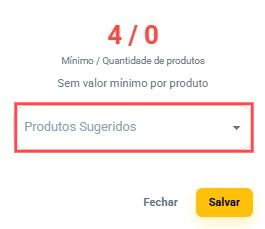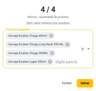 A campanha exigirá um número mínimo de produtos para participação. No pop-up exibido, você verá a quantidade mínima necessária, sendo que não será possível adicionar menos de 4 produtos.