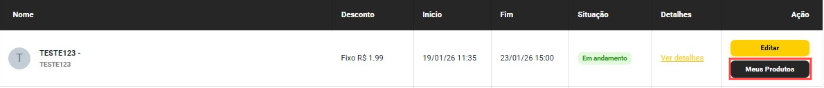 Após confirmar a participação, será necessário escolher os produtos que farão parte da campanha. Para isso, clique em Meus produtos.