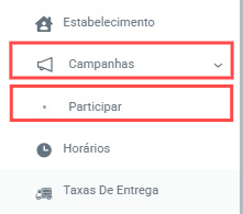 Acesse o menu lateral, clique em Campanhas e, em seguida, em Participar.