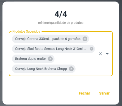 A campanha pode exigir um número mínimo de produtos que devem ser adicionados para participar. No pop-up que aparecerá, você verá a quantidade mínima de produtos necessária.