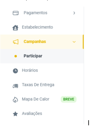 No painel do seu estabelecimento, clique na aba Campanhas no menu lateral esquerdo.