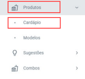 1 - Primeiro, acesse o painel do lojista. Em seguida, abra o menu lateral esquerdo, vá até a opção “Produtos” e depois selecione “Cardápio”.