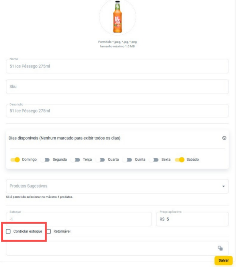 Basta clicar no quadrado para que o controle de estoque seja ativado.