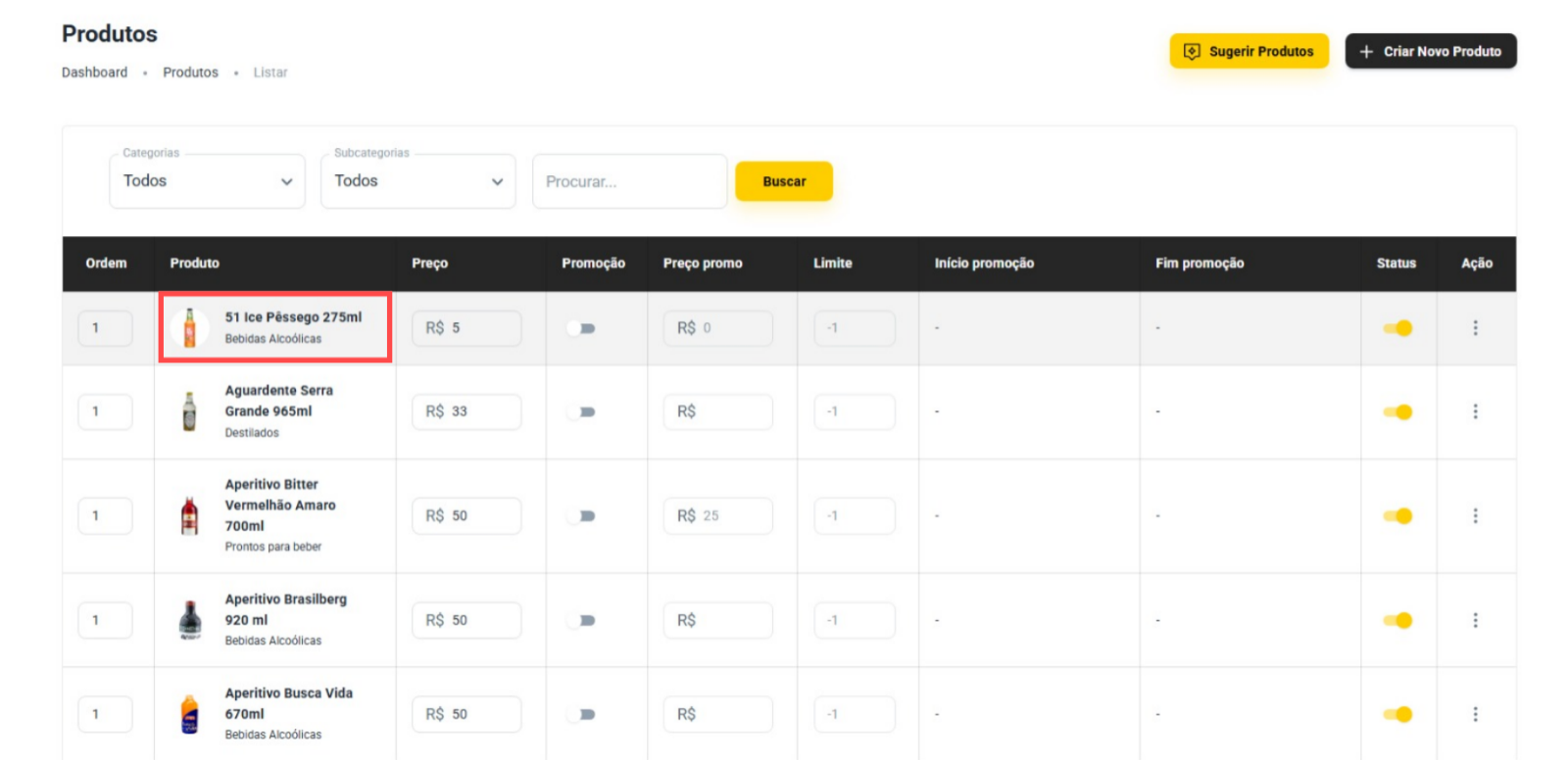 Importante: Quando o estoque de um produto estiver zerado, ele não aparecerá mais no aplicativo. Isso significa que todos os itens disponíveis foram comprados, essa função serve principalmente para evitar pedidos cancelados por falta de produtos no estoque.