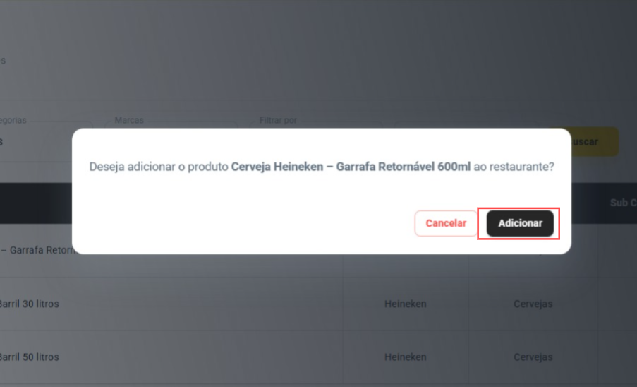 Em seguida, clique em "Adicionar", e pronto! O modelo do produto já estará cadastrado no seu cardápio.