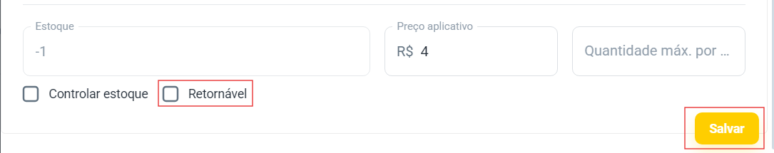 Para ativar um produto retornável, basta marcar a caixa de seleção 'Retornável'.