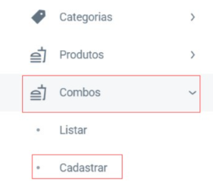 Passo 1. Para criar um combo, vá em “Menu”, role um pouco a página e encontre a opção “Combos”. Depois, é só clicar em “Cadastrar”.