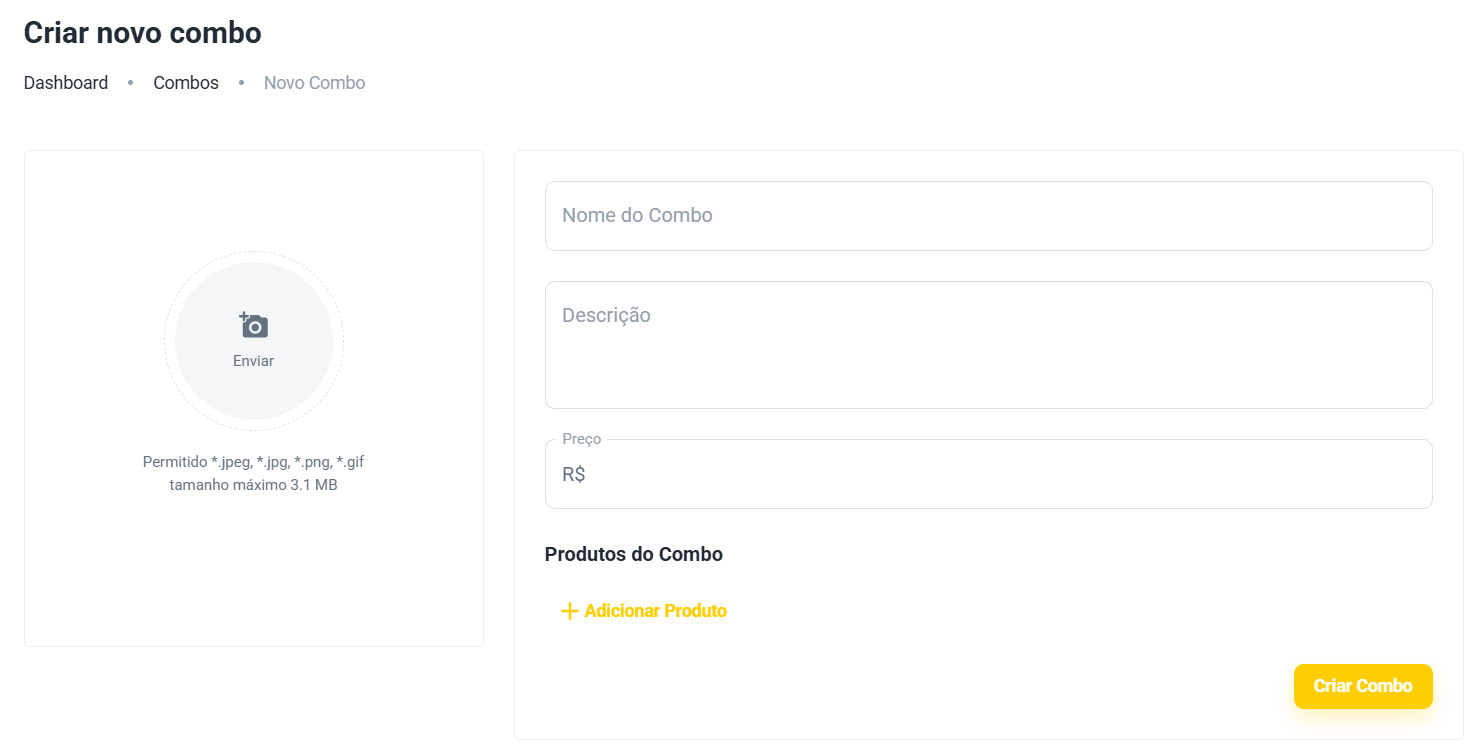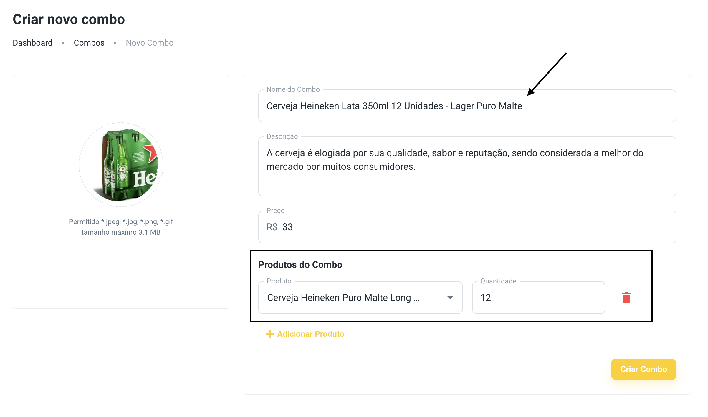 DescriçãoNeste campo, você pode detalhar os produtos que fazem parte do combo.